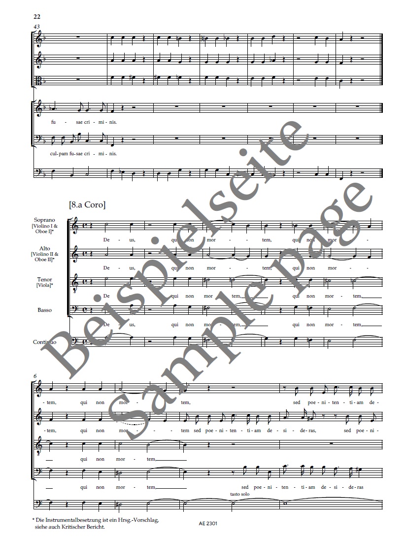Besetzung: Soprano | Alto | Tenore | Basso | Chalumeaux | Oboe I/II | Violino I/II | Viola | Continuo